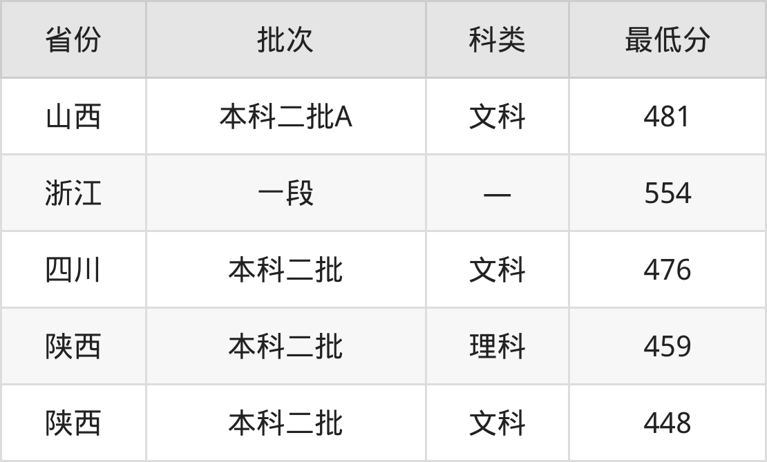 西安音乐学院艺术史论专业在全国各省最低录取分数线为448分(陕西文科),除此之外,在其余地区的最低分为山西文科481分、浙江554分、四川文科476分,以上数据均为2024年数据,供2025年高考生参考。