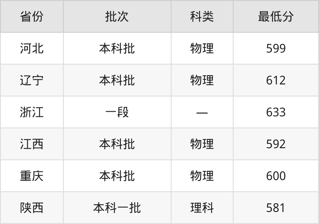 南昌大学测控技术与仪器专业录取分数线从581分到633分不等,最低分数线如下: