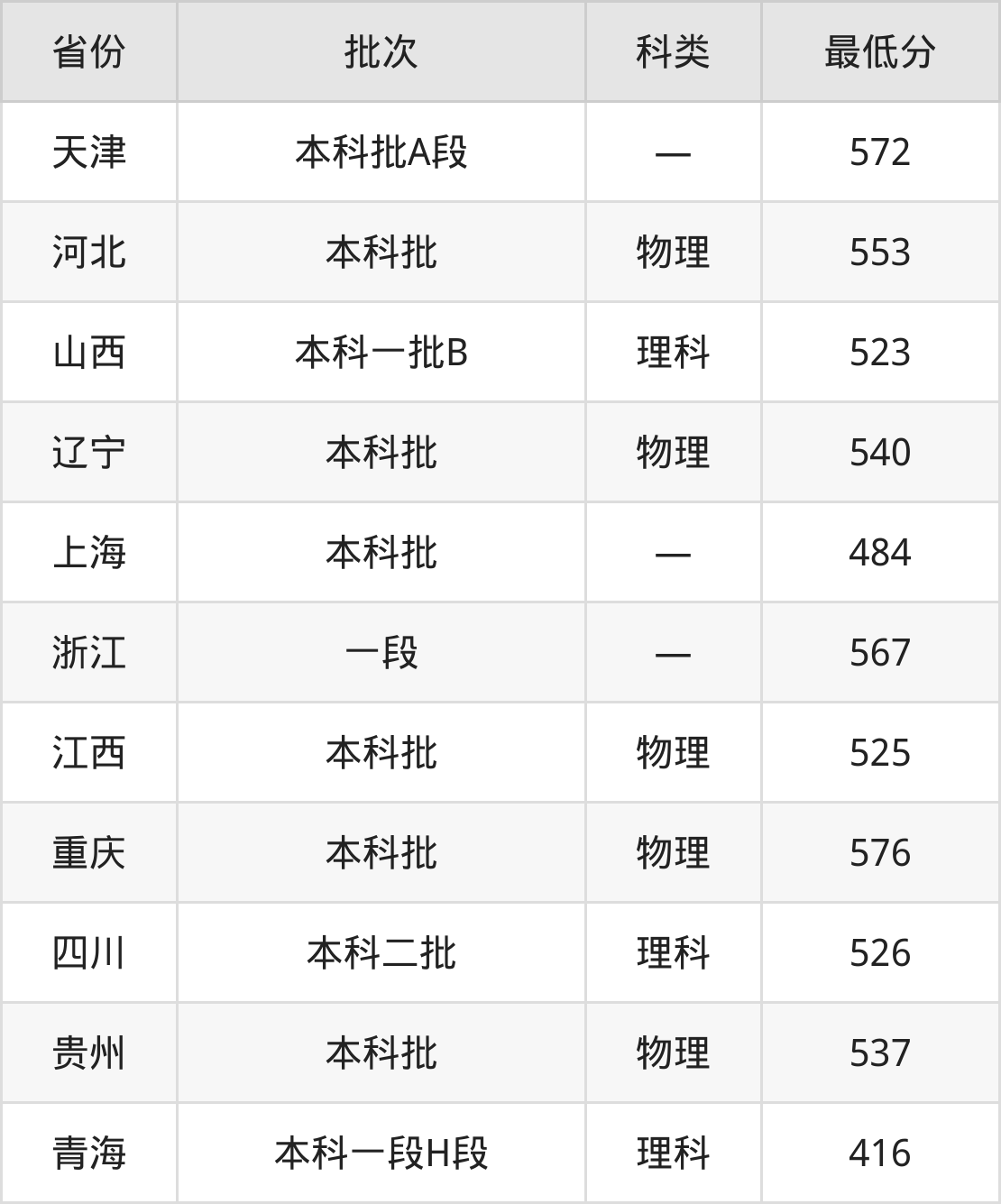 大理大学医学影像学专业录取分数线从416分到576分不等,在部分地区的最低分数线如下: