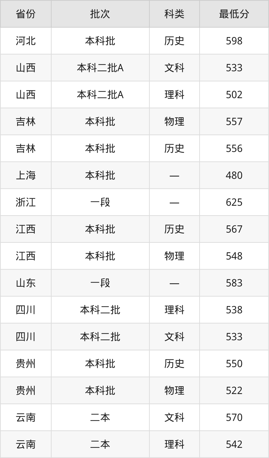 贵州:历史组最低550分、物理组最低522分