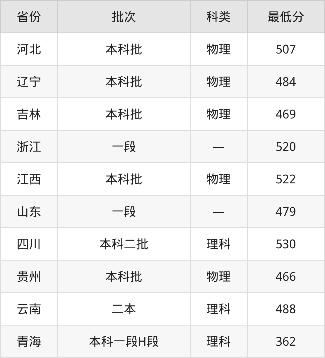 福建农林大学蜂学专业在全国各省最低录取分数线为362分(青海理科),除此之外,在其余地区的最低分为辽宁物理类484分、四川理科530分、贵州物理类466分、云南理科488分等,以上数据均为2024年数据,供2025年高考生参考。