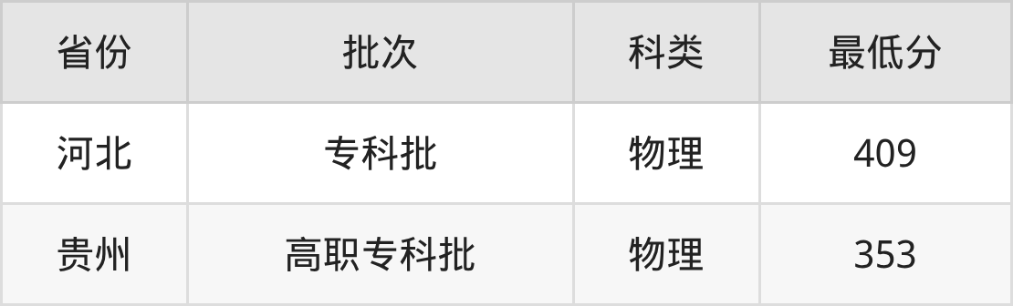 百色职业学院大数据与会计专业在全国各省最低录取分数线为353分(贵州物理类),除此之外,在其余地区的最低分为河北物理类409分,以上数据均为2025年数据,供2026年高考生参考。