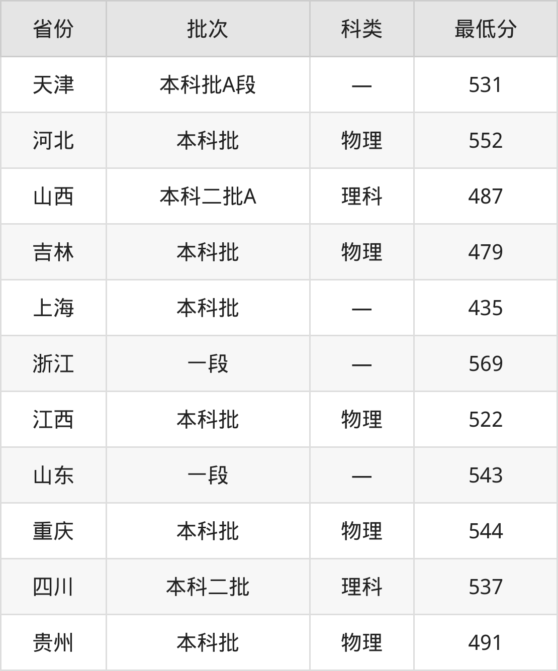 湖北中医药大学物联网工程专业在全国各省最低录取分数线为435分(上海),除此之外,在其余地区的最低分为河北物理类552分、山西理科487分、吉林物理类479分、山东543分等,以上数据均为2024年数据,供2025年高考生参考。
