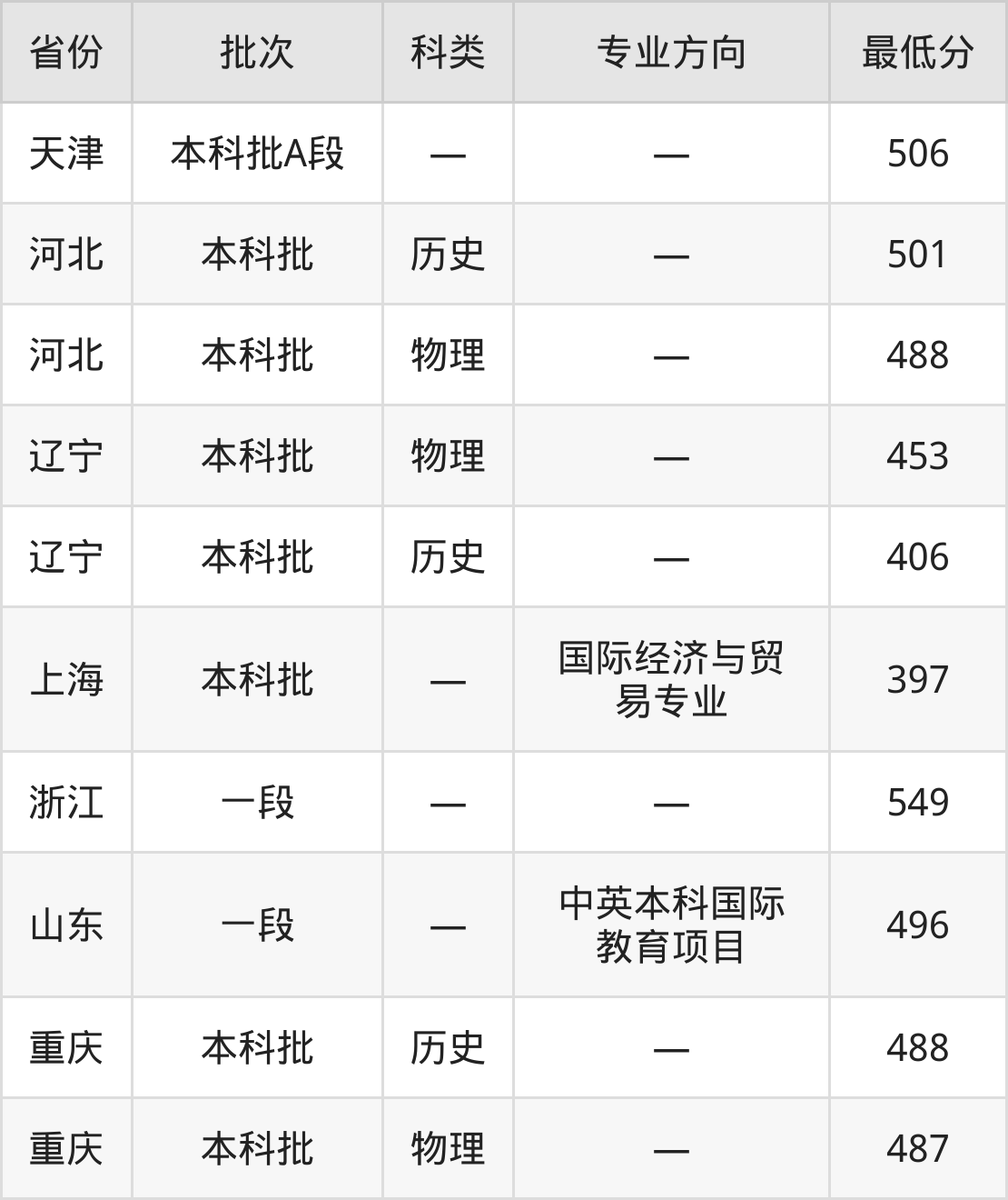 新疆农业大学经济与贸易类专业在全国各省最低录取分数线为397分(上海),除此之外,在其余地区的最低分为河北物理类488分、辽宁历史类406分、浙江549分、山东496分等,以上数据均为2024年数据,供2025年高考生参考。