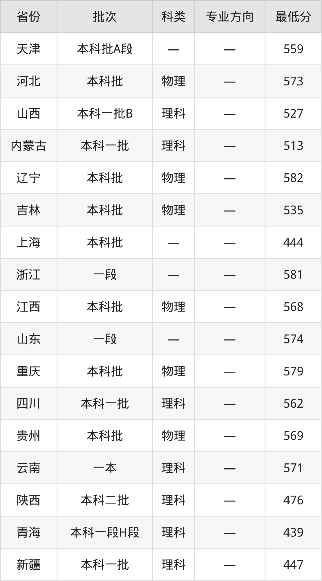 西南科技大学计算机类专业录取分数线从439分到582分不等,在部分地区的最低分数线如下: