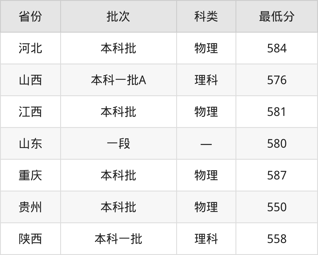 贵州大学材料成型及控制工程专业在全国各省最低录取分数线为550分(贵州物理类),除此之外,在其余地区的最低分为山东580分、重庆物理类587分、陕西理科558分、河北物理类584分等,以上数据均为2024年数据,供2025年高考生参考。