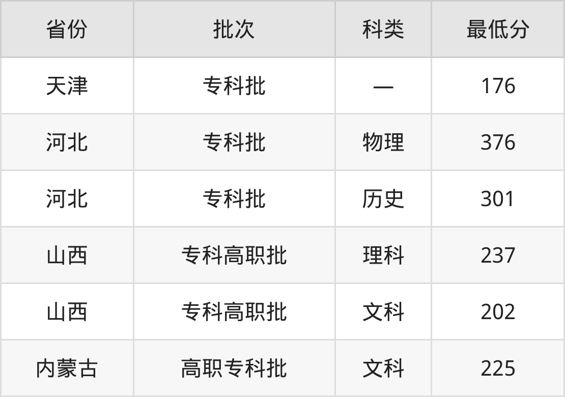 保定理工学院大数据与会计专业录取分数线从176分到376分不等,最低分数线如下: