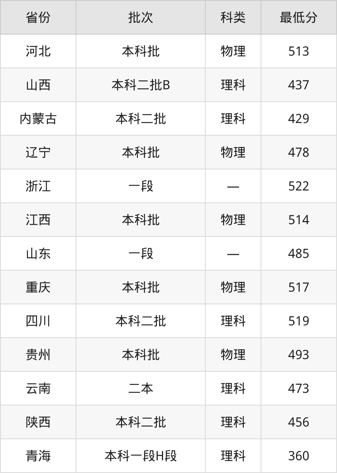邵阳学院自动化专业在全国各省最低录取分数线为360分(青海理科),除此之外,在其余地区的最低分为河北物理类513分、浙江522分、山东485分、重庆物理类517分等,以上数据均为2024年数据,供2025年高考生参考。