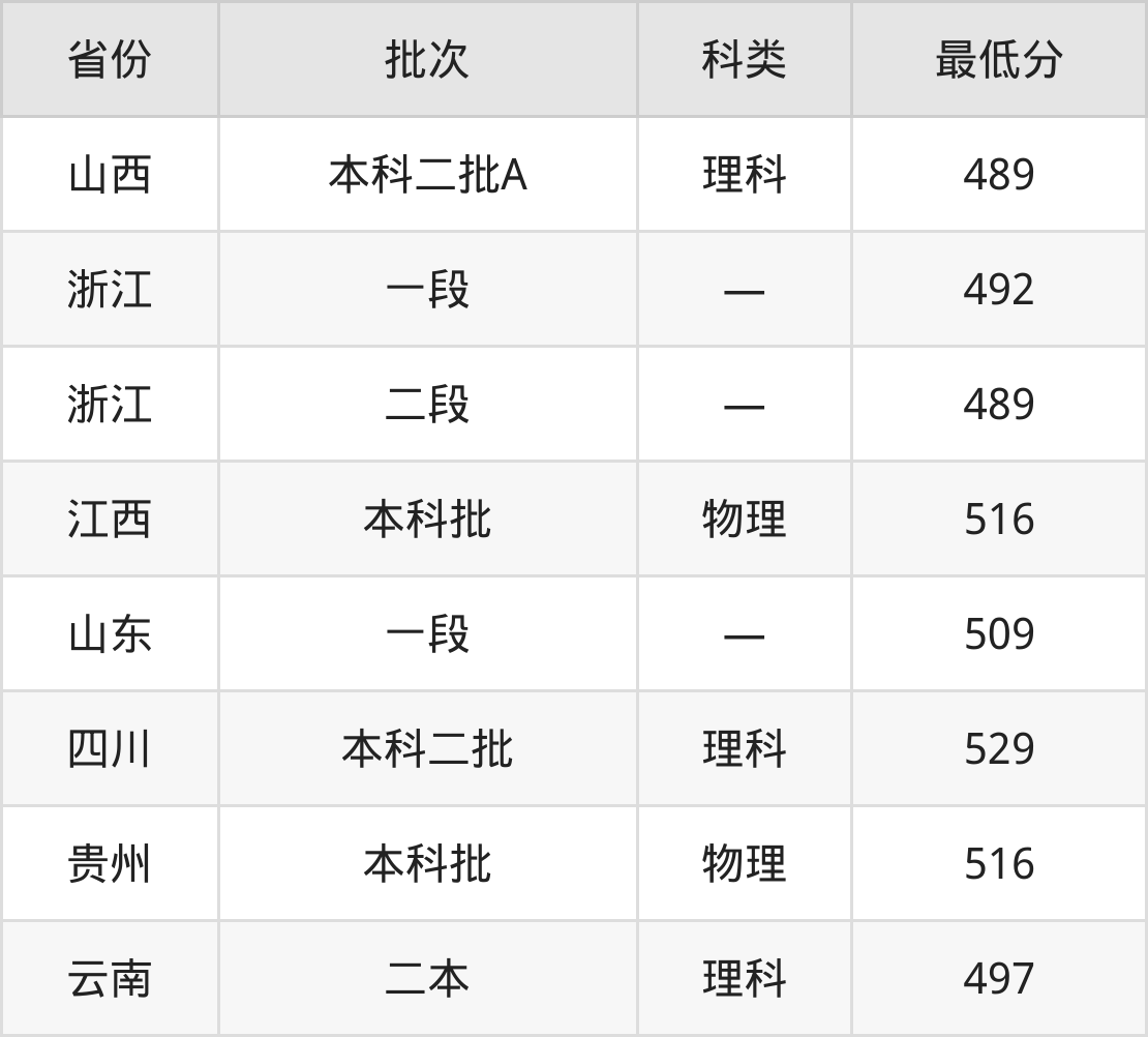海南医科大学中药学专业在全国各省最低录取分数线为489分(山西理科),除此之外,在其余地区的最低分为贵州物理类516分、云南理科497分、浙江489分、江西物理类516分等,以上数据均为2024年数据,供2025年高考生参考。