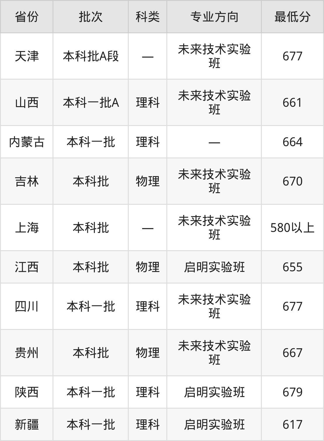 山西:理科最低661分