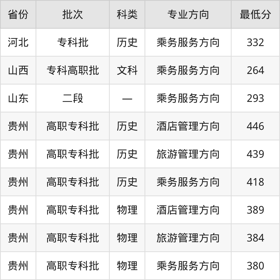 贵州交通职业大学旅游管理专业在全国各省录取分数线: