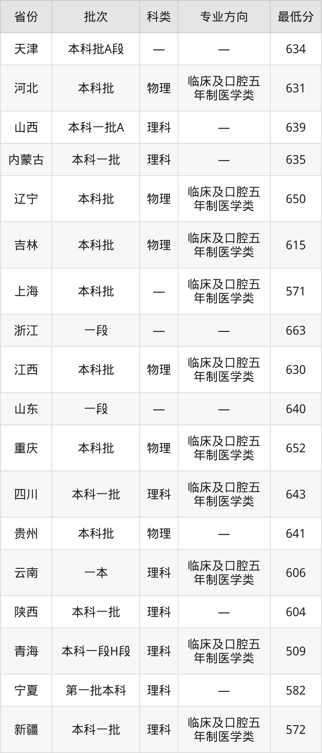 中南大学临床医学类专业录取分数线从509分到663分不等,在部分地区的最低分数线如下: