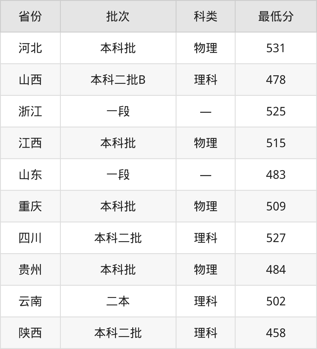 桂林航天工业学院测控技术与仪器专业在全国各省最低录取分数线为458分(陕西理科),除此之外,在其余地区的最低分为山东483分、重庆物理类509分、四川理科527分、贵州物理类484分等,以上数据均为2024年数据,供2025年高考生参考。
