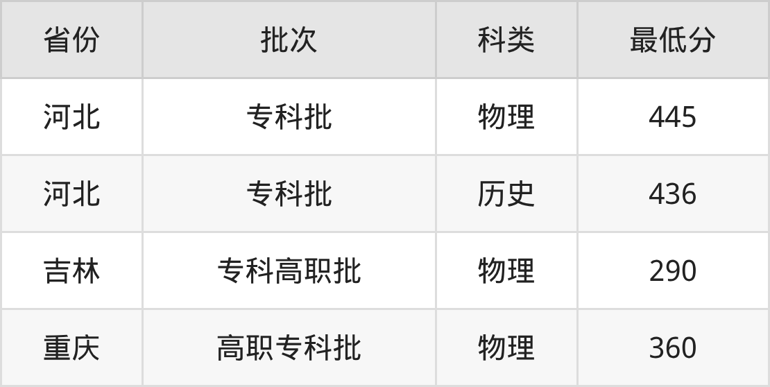 邯郸职业技术学院计算机网络技术专业在全国各省最低录取分数线为290分(吉林物理类),除此之外,在其余地区的最低分为重庆物理类360分、河北历史类436分,以上数据均为2025年数据,供2026年高考生参考。