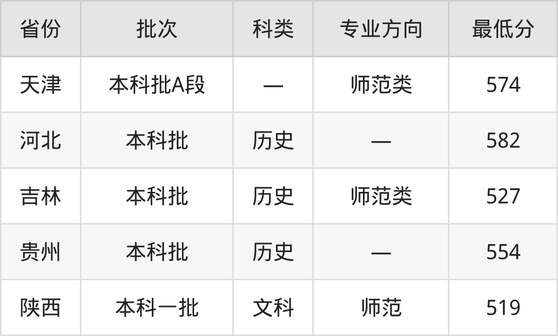 延安大学思想政治教育专业录取分数线从519分到582分不等,最低分数线如下: