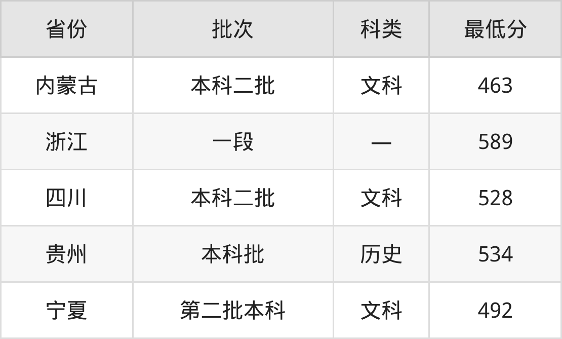 西北民族大学文物与博物馆学专业在全国各省录取分数线: