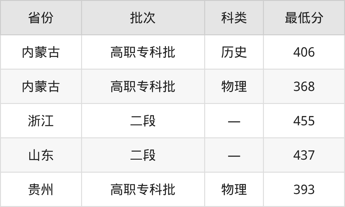 湖北水利水电职业技术学院电气自动化技术专业录取分数线从368分到455分不等,最低分数线如下: