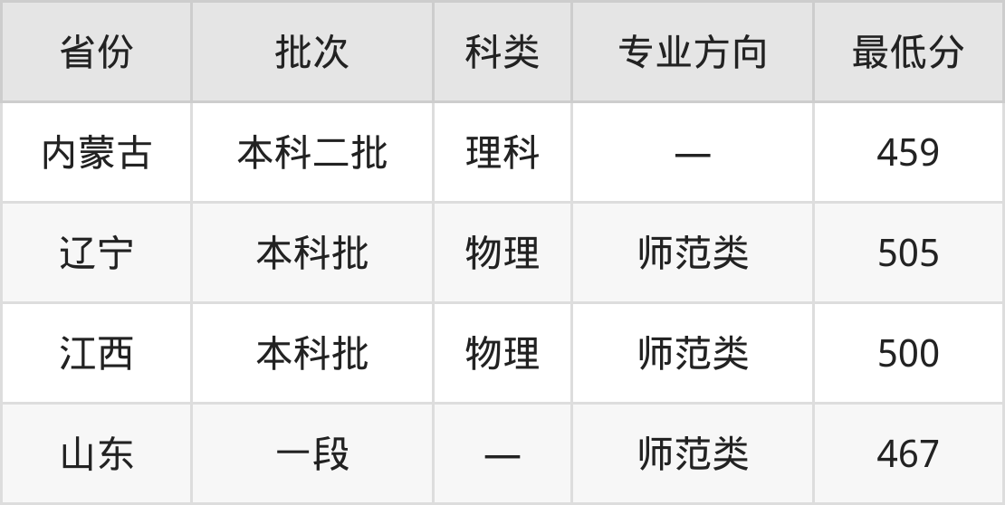 洛阳师范学院物理学专业录取分数线从459分到505分不等,最低分数线如下: