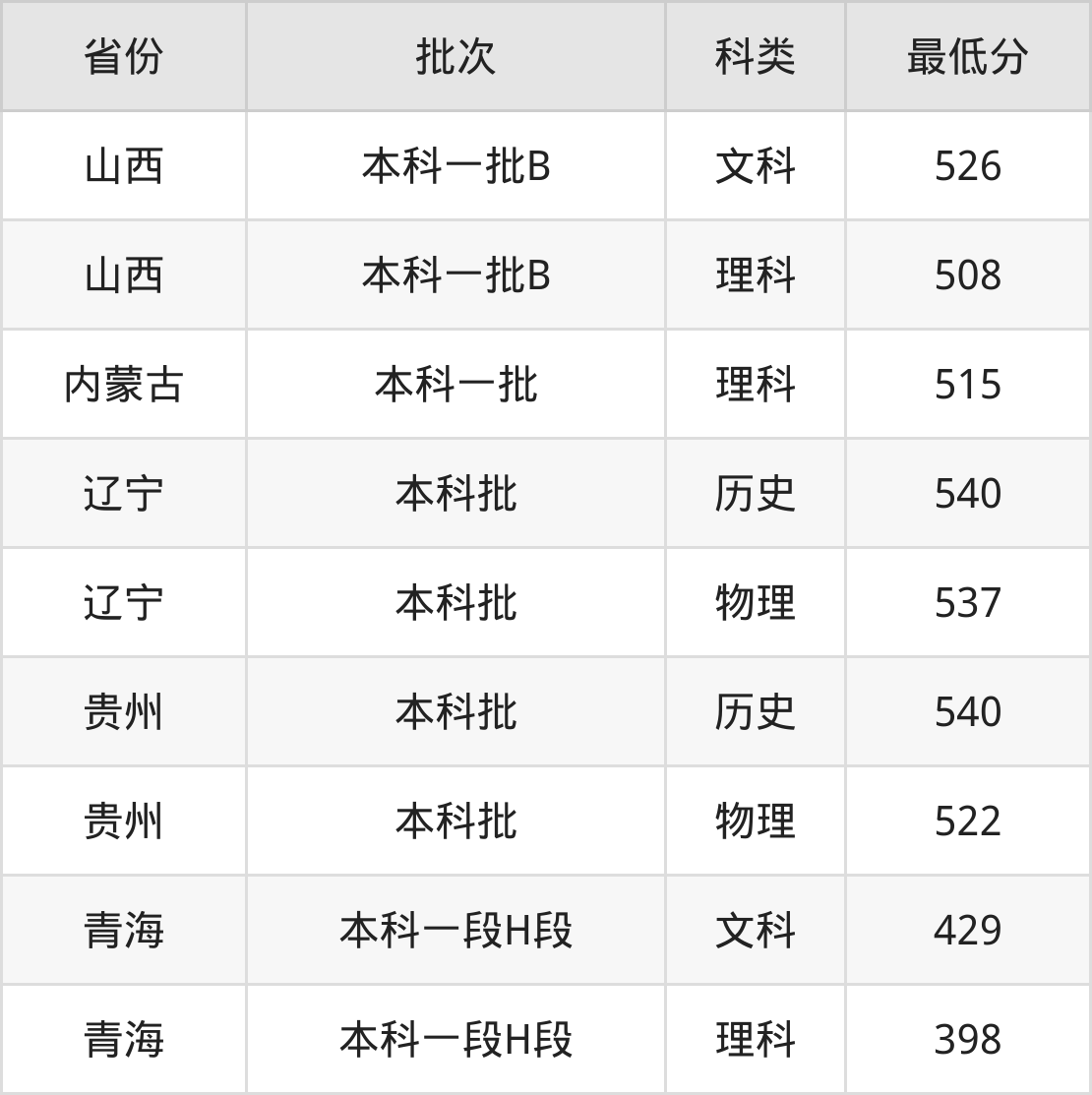 内蒙古:理科最低515分