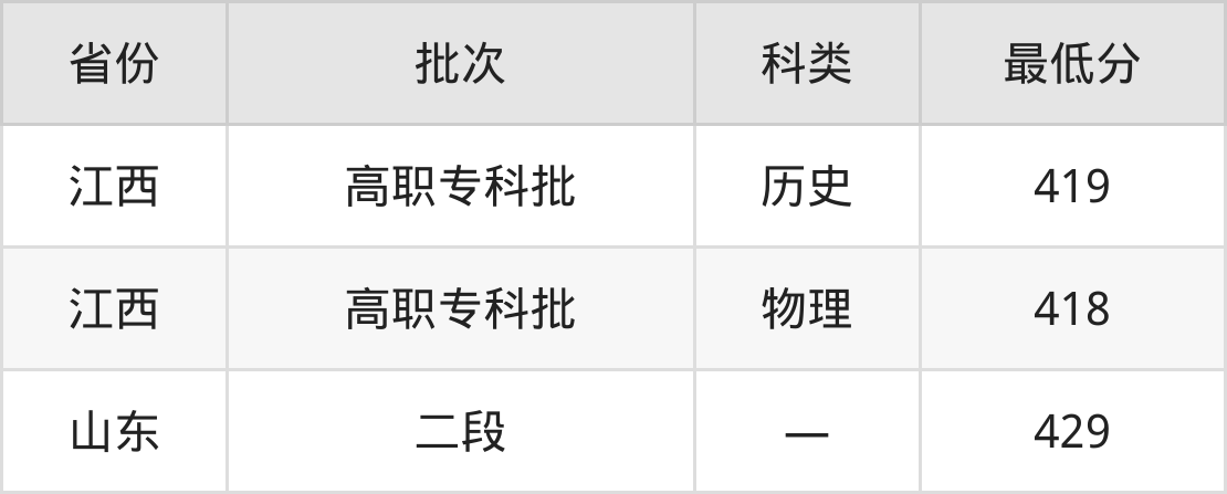 江西交通职业技术学院电气自动化技术专业录取分数线从418分到429分不等,最低分数线如下: