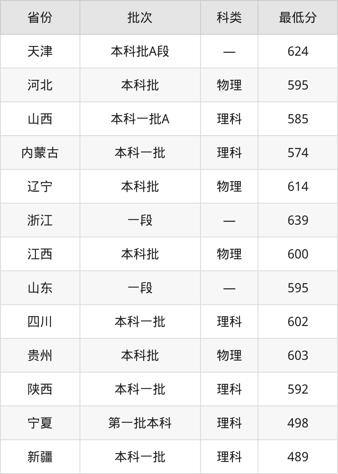 浙江:最低639分