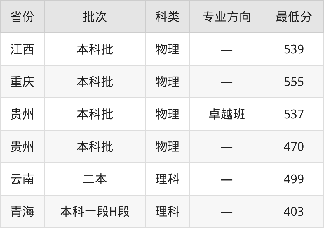 遵义医科大学药学类专业在全国各省最低录取分数线为403分(青海理科),除此之外,在其余地区的最低分为重庆物理类555分、贵州物理类470分、云南理科499分、江西物理类539分,以上数据均为2024年数据,供2025年高考生参考。