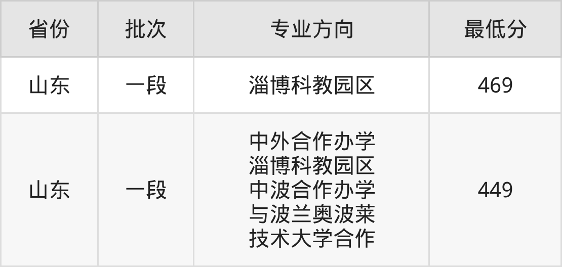 山东:最低449分
