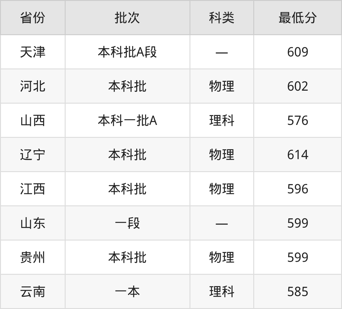 湖南师范大学通信工程专业在全国各省最低录取分数线为576分(山西理科),除此之外,在其余地区的最低分为河北物理类602分、辽宁物理类614分、江西物理类596分、山东599分等,以上数据均为2024年数据,供2025年高考生参考。