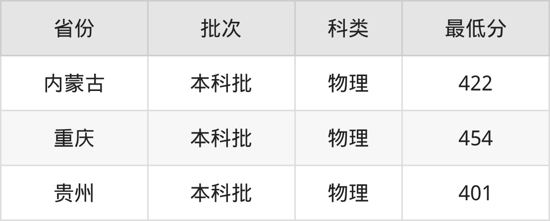 南通理工学院新能源科学与工程专业在全国各省最低录取分数线为401分(贵州物理类),除此之外,在其余地区的最低分为内蒙古物理类422分、重庆物理类454分,以上数据均为2025年数据,供2026年高考生参考。