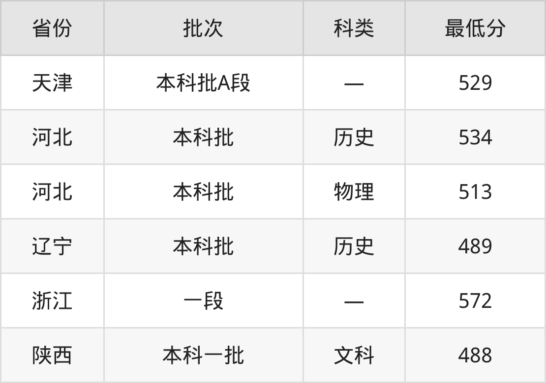 中南林业科技大学朝鲜语专业在全国各省最低录取分数线为488分(陕西文科),除此之外,在其余地区的最低分为天津529分、河北物理类513分、辽宁历史类489分、浙江572分,以上数据均为2024年数据,供2025年高考生参考。