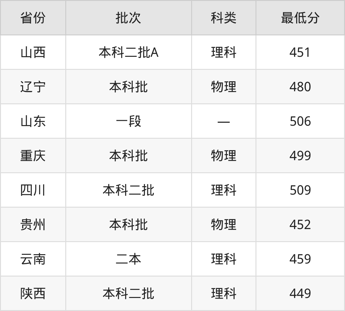 黑龙江工程学院地理信息科学专业在全国各省最低录取分数线为449分(陕西理科),除此之外,在其余地区的最低分为辽宁物理类480分、山东506分、重庆物理类499分、四川理科509分等,以上数据均为2024年数据,供2025年高考生参考。