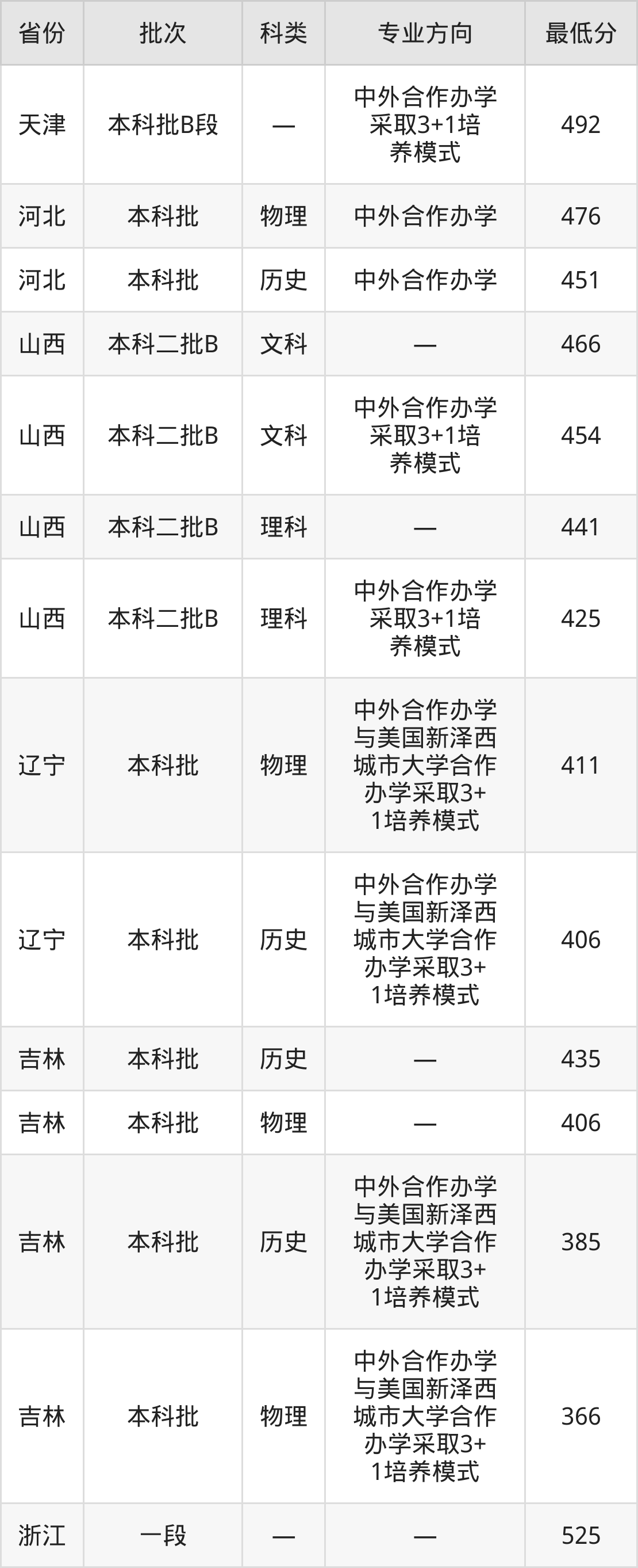 | 历史类 | 第002组( 中外合作) | 中外合作办学 与美国新泽西 城市大学合作 办学采取3+ 1培养模式 | 28 |