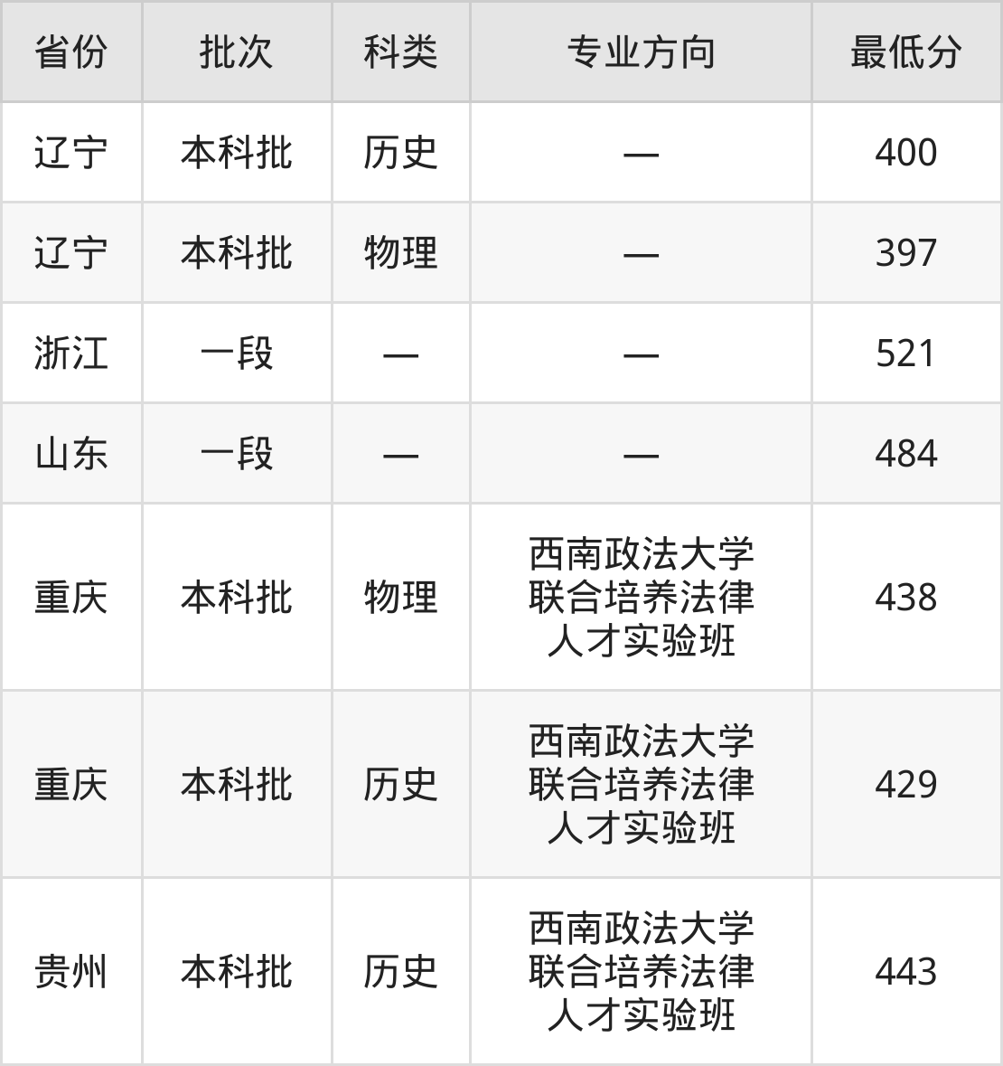| 历史类 | 100组 | 西南政法大学 联合培养法律 人才实验班 | 10 |