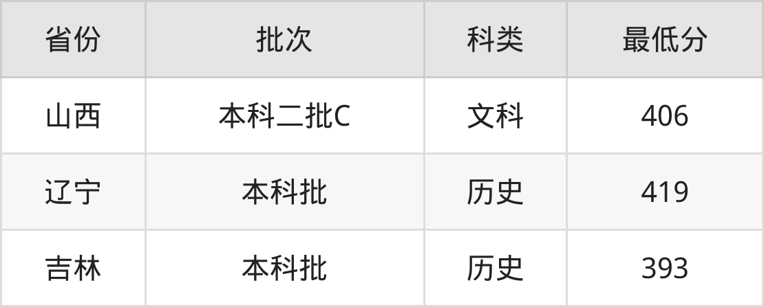 东莞城市学院汉语言文学专业在全国各省最低录取分数线为393分(吉林历史类),除此之外,在其余地区的最低分为山西文科406分、辽宁历史类419分,以上数据均为2024年数据,供2025年高考生参考。