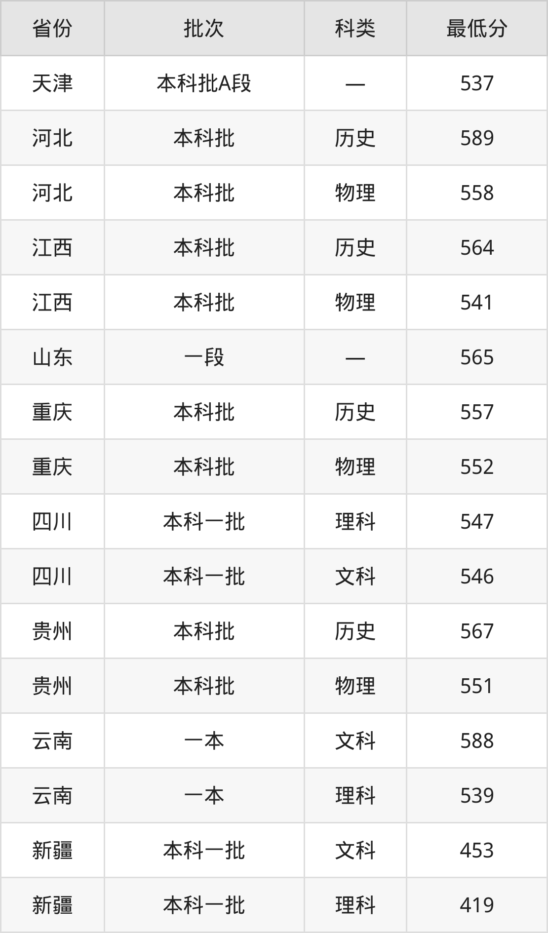 海南师范大学法学专业在全国各省最低录取分数线为419分(新疆理科),除此之外,在其余地区的最低分为天津537分、四川文科546分、重庆物理类552分、贵州物理类551分等,以上数据均为2024年数据,供2025年高考生参考。