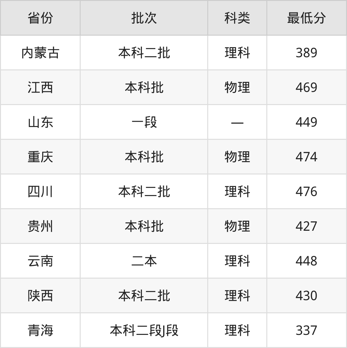 内蒙古:理科最低389分