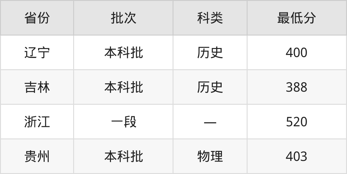 广西外国语学院艺术教育专业在全国各省最低录取分数线为388分(吉林历史类),除此之外,在其余地区的最低分为辽宁历史类400分、浙江520分、贵州物理类403分,以上数据均为2024年数据,供2025年高考生参考。