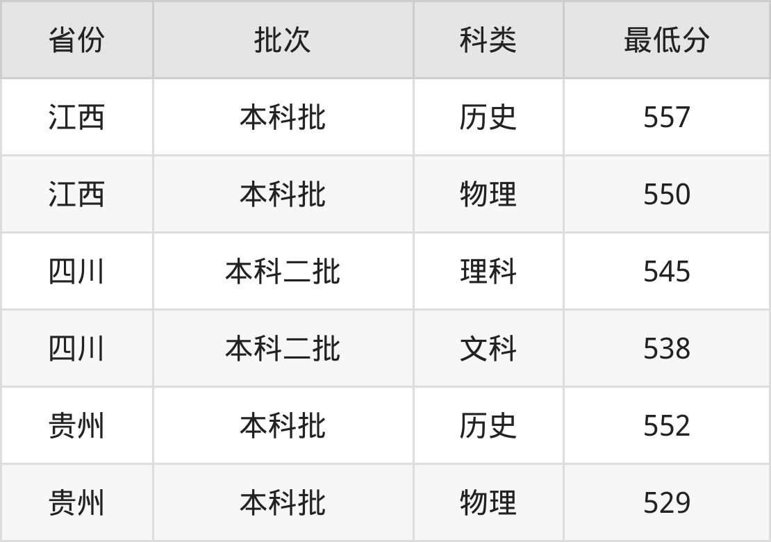 广东警官学院法学专业录取分数线从529分到557分不等,最低分数线如下: