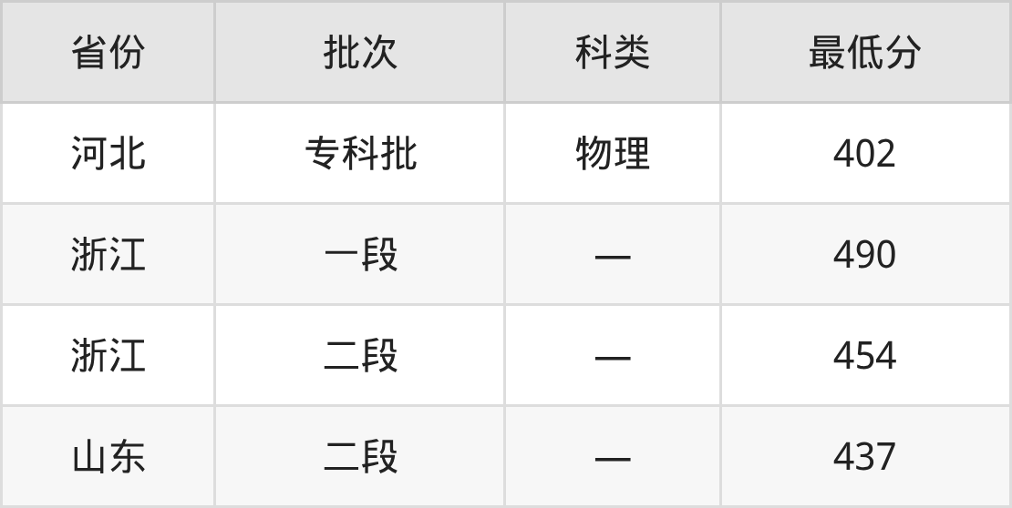 上海建设管理职业技术学院风景园林设计专业在全国各省最低录取分数线为402分(河北物理类),除此之外,在其余地区的最低分为浙江454分、山东437分,以上数据均为2025年数据,供2026年高考生参考。