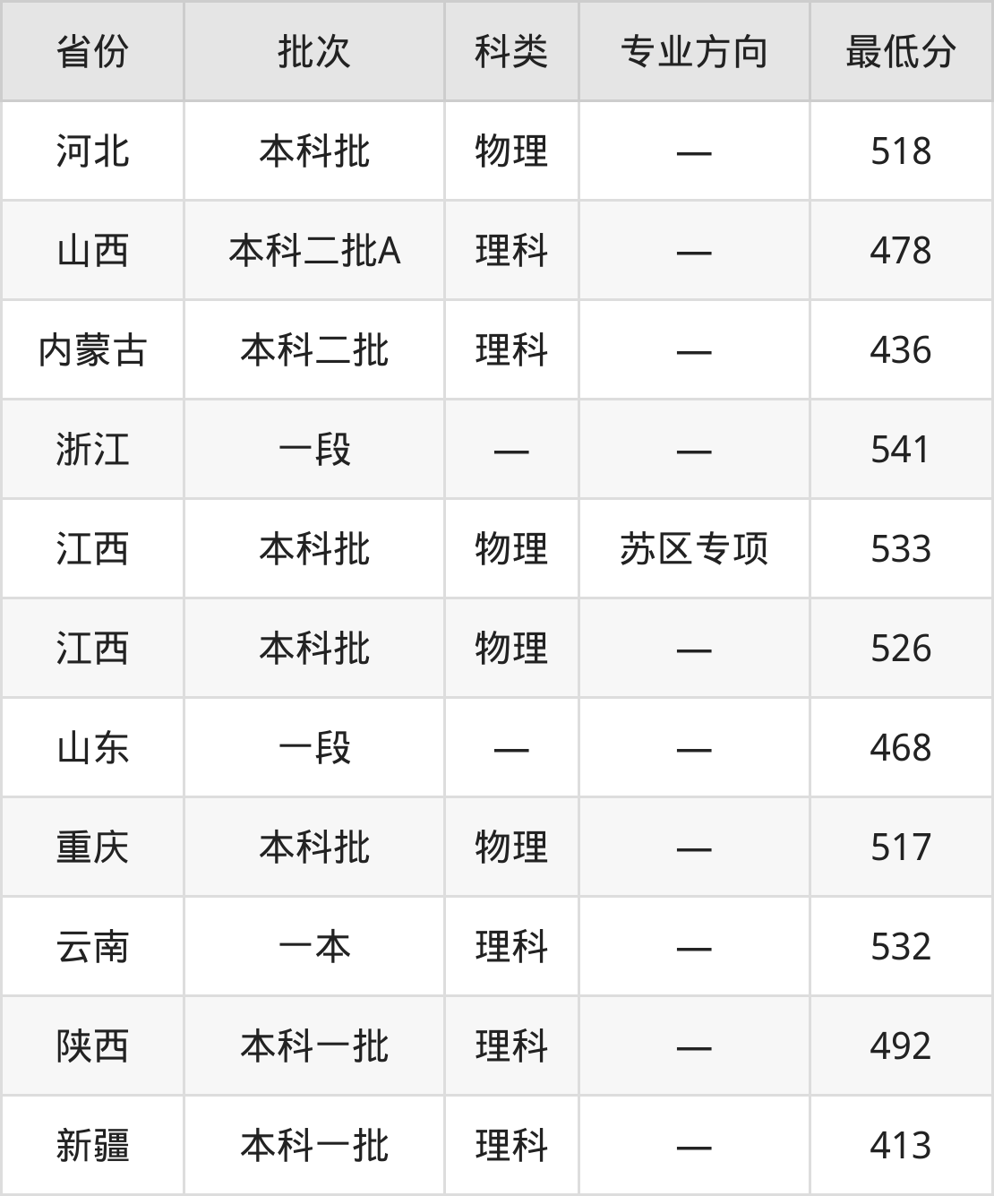 东华理工大学地下水科学与工程专业在全国各省录取分数线: