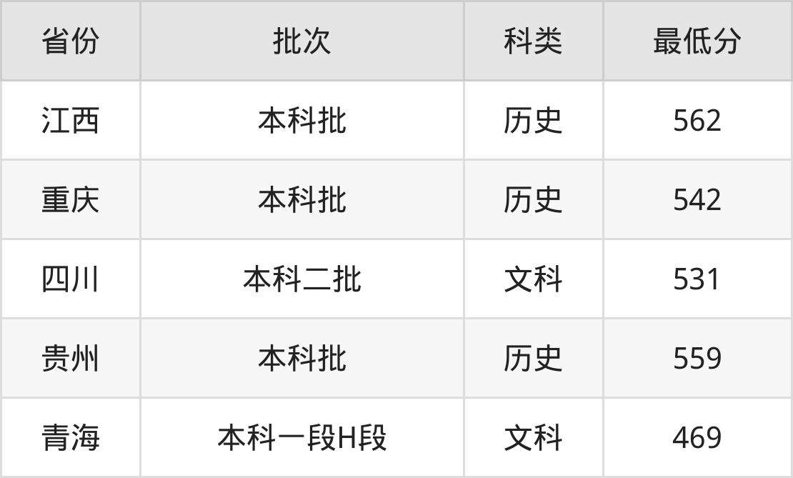 重庆工商大学汉语言文学专业录取分数线从469分到562分不等,最低分数线如下: