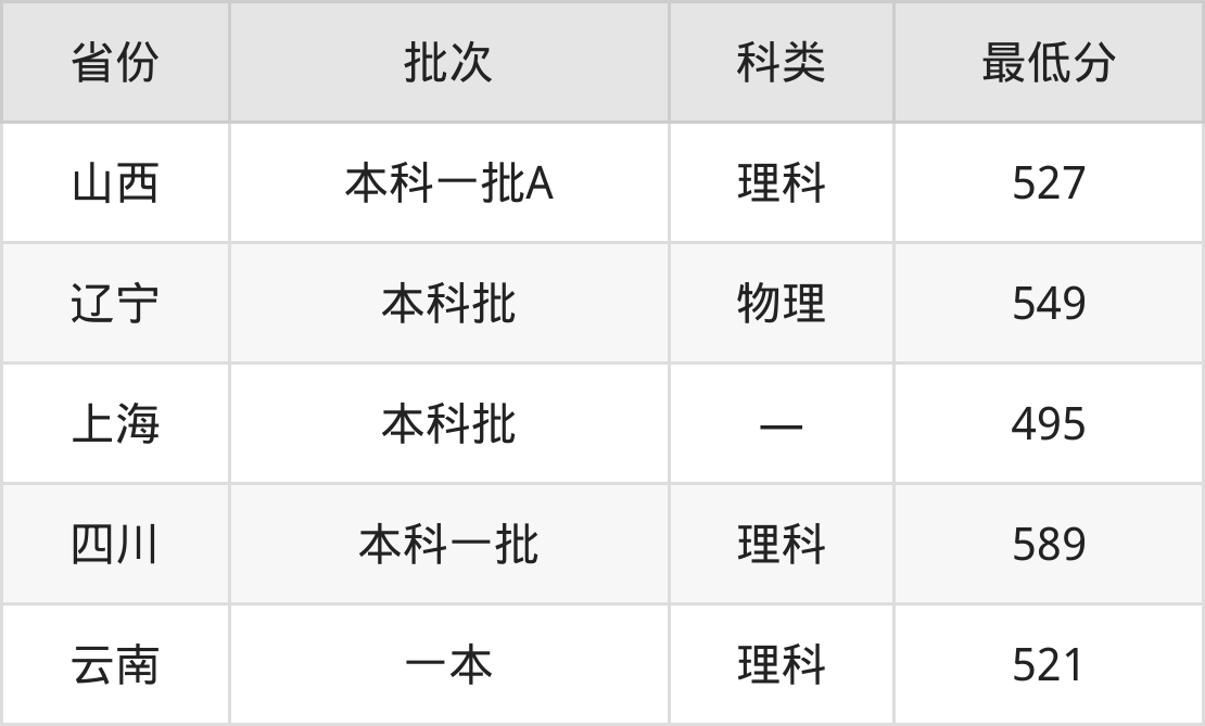 广西大学工商管理专业在全国各省最低录取分数线为495分(上海),除此之外,在其余地区的最低分为云南理科521分、山西理科527分、辽宁物理类549分、四川理科589分,以上数据均为2024年数据,供2025年高考生参考。