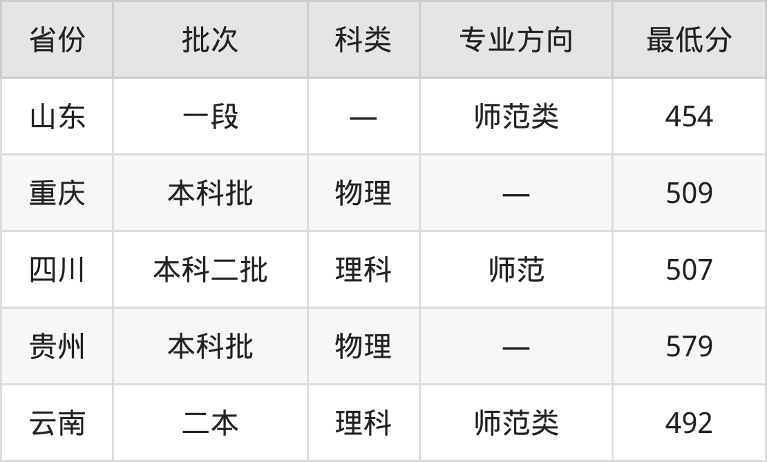 阿坝师范学院数学与应用数学专业录取分数线从454分到579分不等,最低分数线如下: