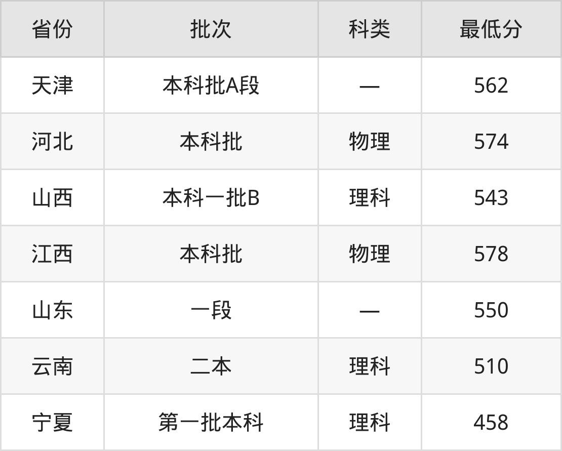 济南大学机器人工程专业在全国各省最低录取分数线为458分(宁夏理科),除此之外,在其余地区的最低分为天津562分、河北物理类574分、山西理科543分、江西物理类578分等,以上数据均为2024年数据,供2025年高考生参考。