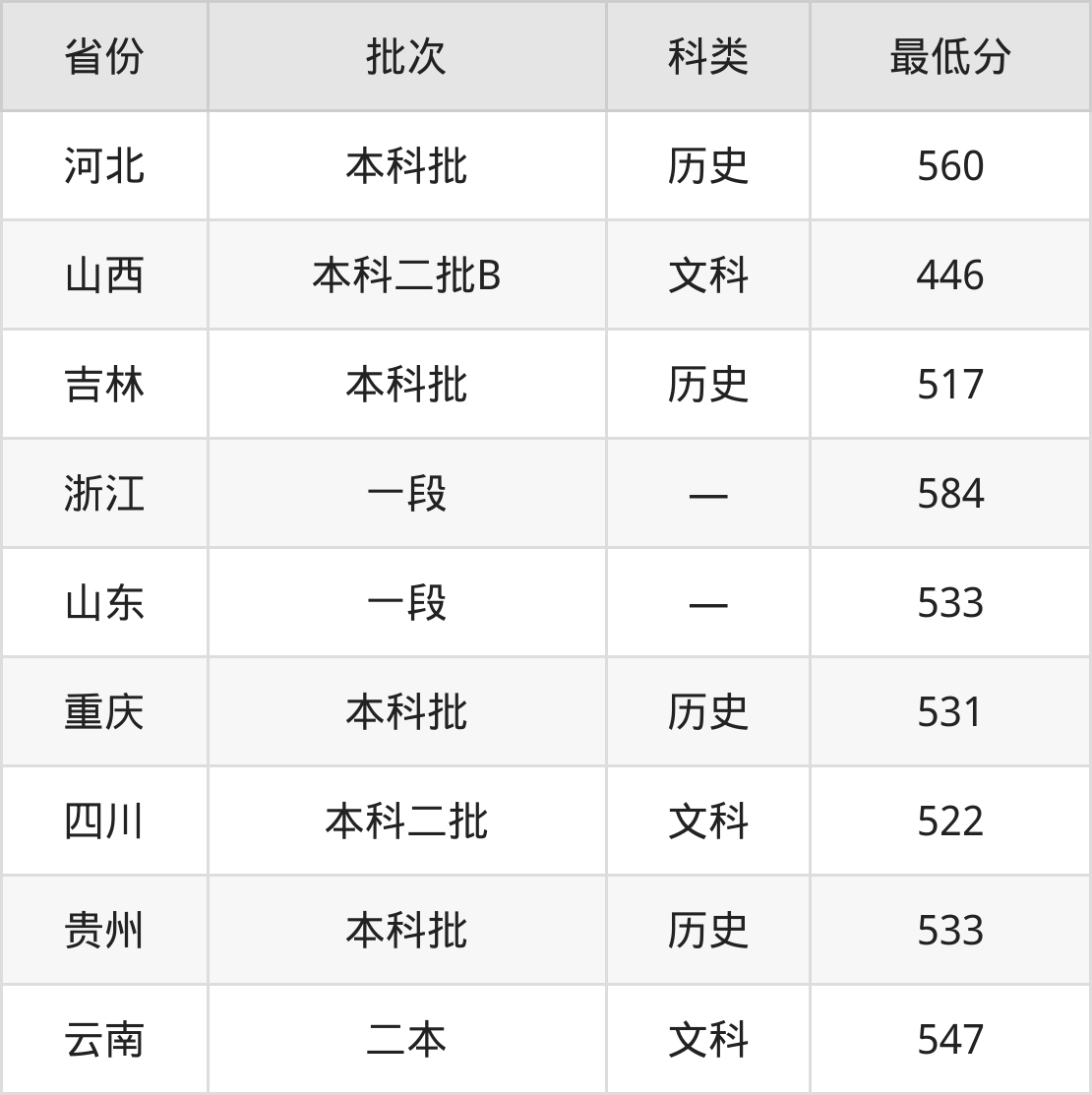 云南:文科最低547分