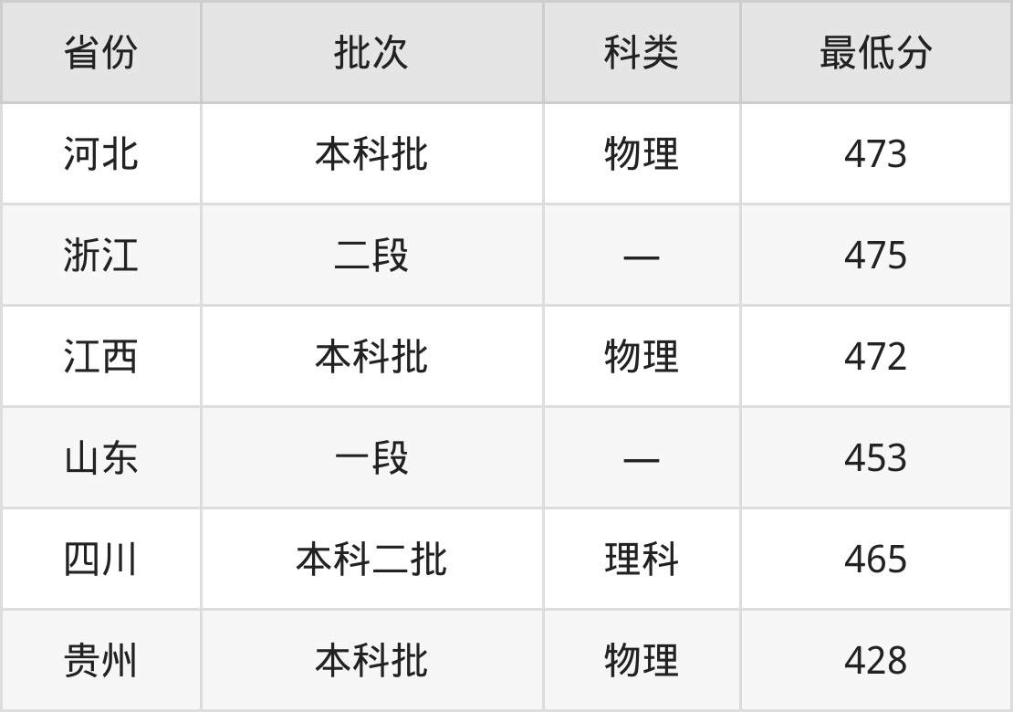 广东白云学院电气工程及其自动化专业在全国各省最低录取分数线为428分(贵州物理类),除此之外,在其余地区的最低分为浙江475分、江西物理类472分、山东453分、四川理科465分等,以上数据均为2024年数据,供2025年高考生参考。