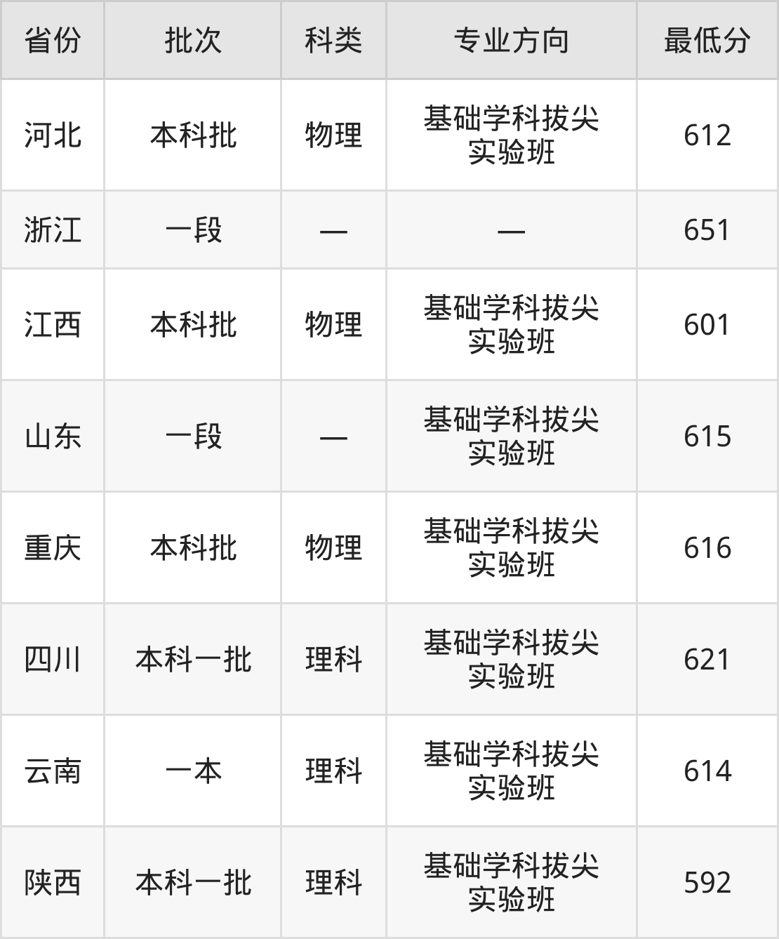 | 理科 | 基础学科拔尖 实验班 | 13 |