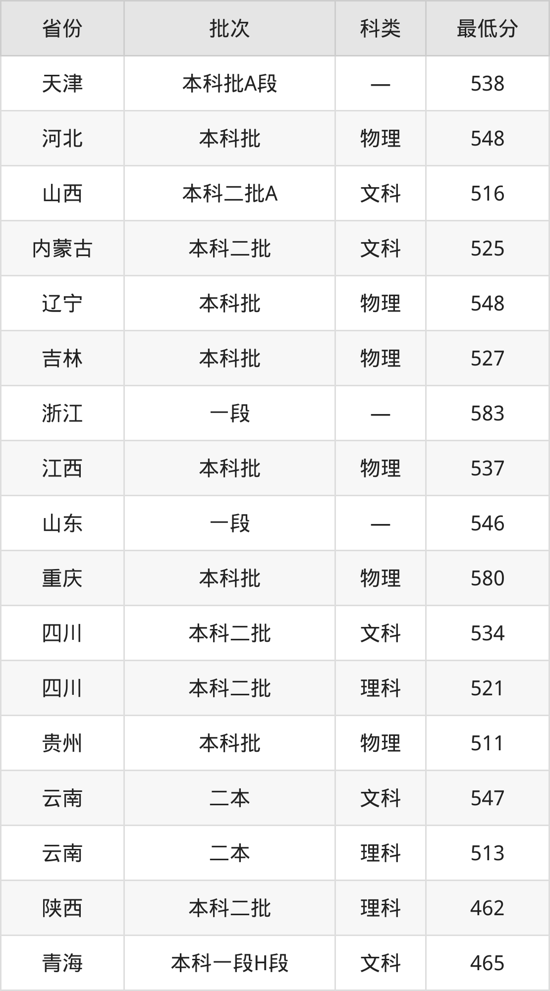 湖北中医药大学中医骨伤科学专业录取分数线从462分到583分不等,在部分地区的最低分数线如下: