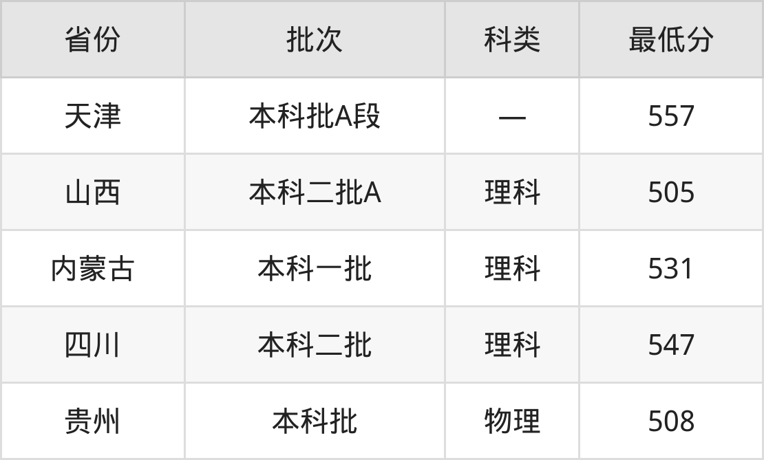 天津理工大学应用物理学专业录取分数线从505分到557分不等,最低分数线如下: