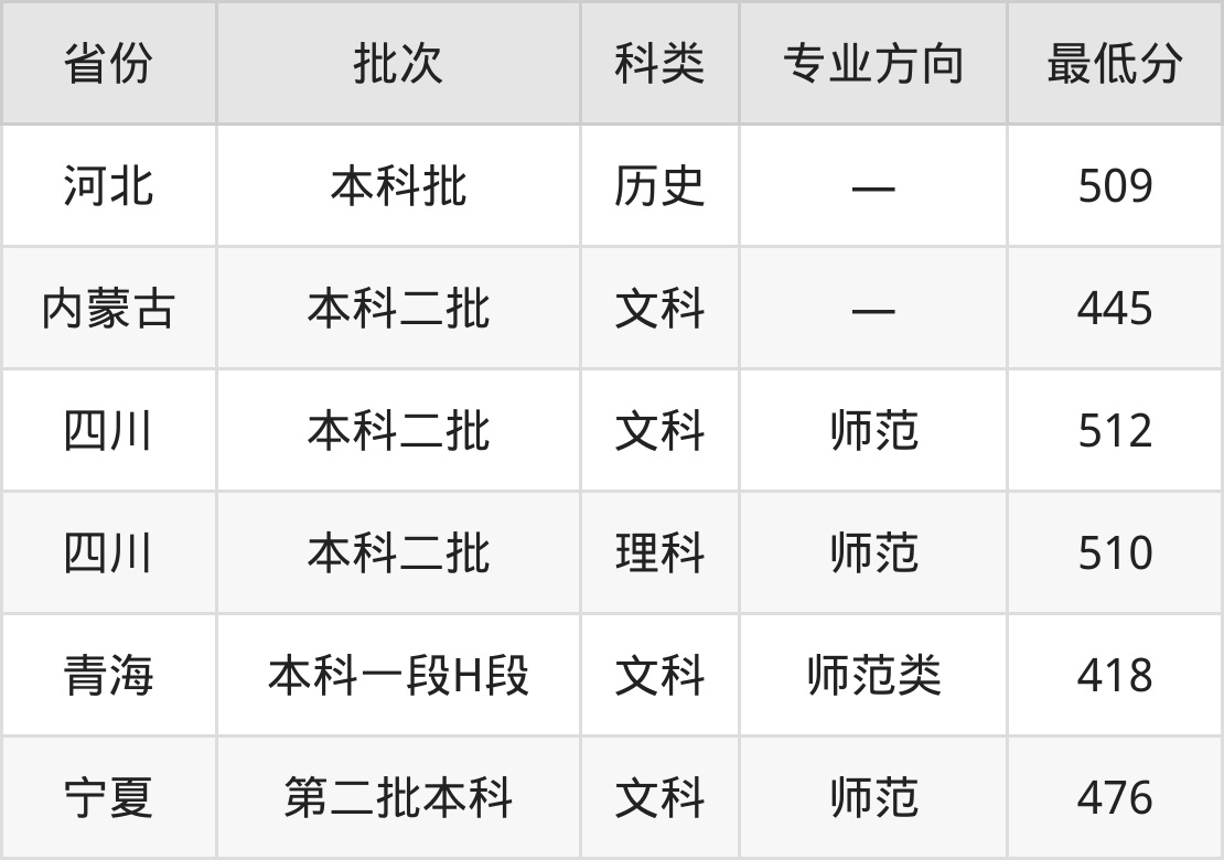 四川文理学院特殊教育专业录取分数线从418分到512分不等,最低分数线如下: